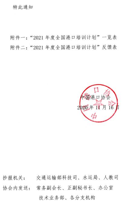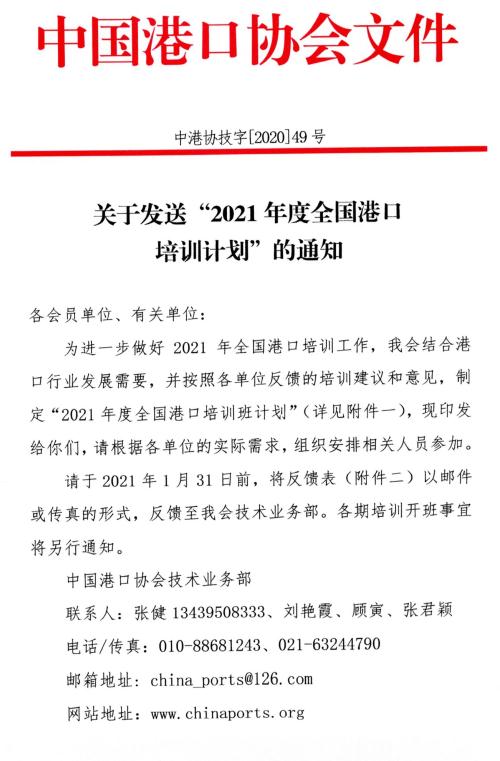 关于发送“2021年度全国港口培训计划”的通知