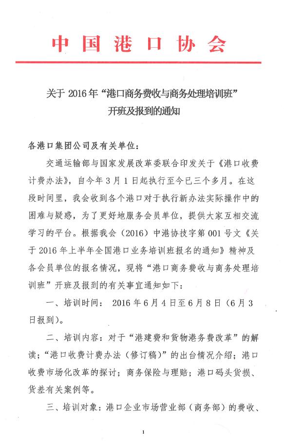 电子版通知:关于2016年“港口商务费收与商务处理培训班”开班及报到的通知.pdf