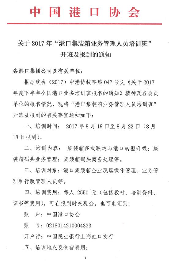 电子版通知下载:关于2017年“港口集装箱业务管理人员培训班”开班及报到的通知.pdf