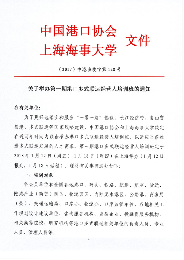 关于举办第一期港口多式联运经营人培训班的通知