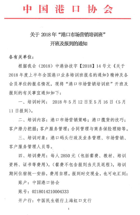电子版通知下载:关于2018年“港口市场营销培训班”开班及报到的通知.pdf