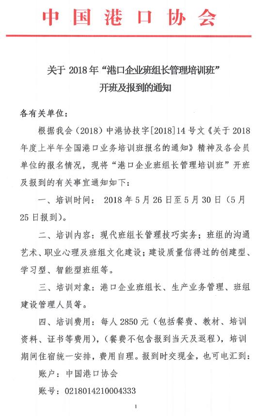 电子版通知下载:关于2018年“港口企业班组长管理培训班”开班及报到的通知.PDF