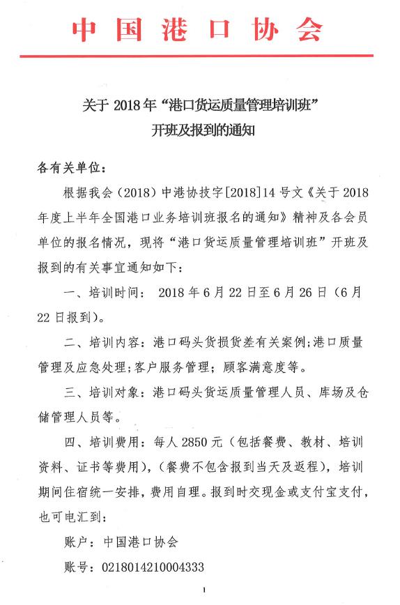 电子版通知下载:关于2018年“港口货运质量管理培训班”开班及报到的通知.pdf