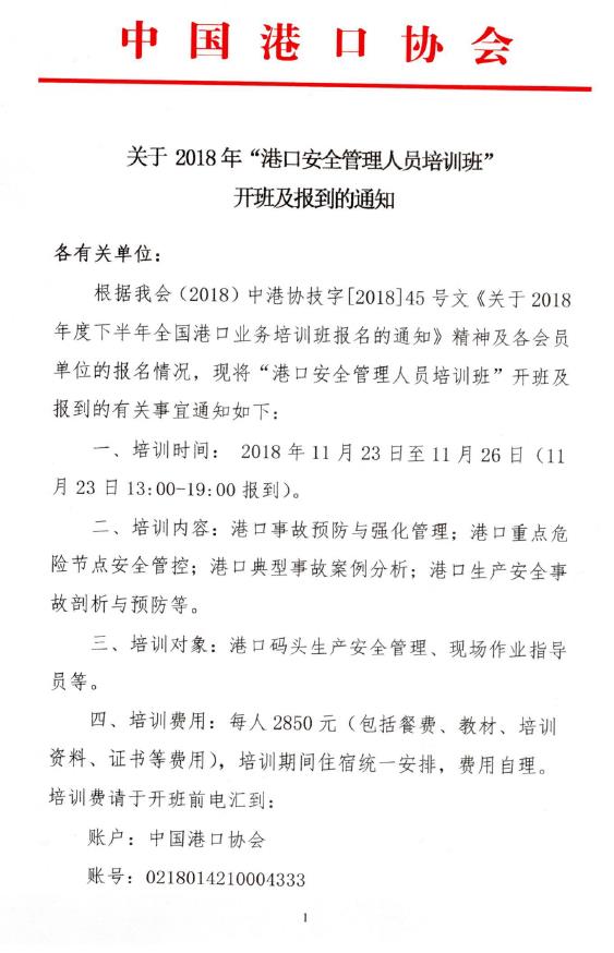 电子版通知下载:关于2018年“港口安全管理人员培训班”开班及报到的通知.pdf