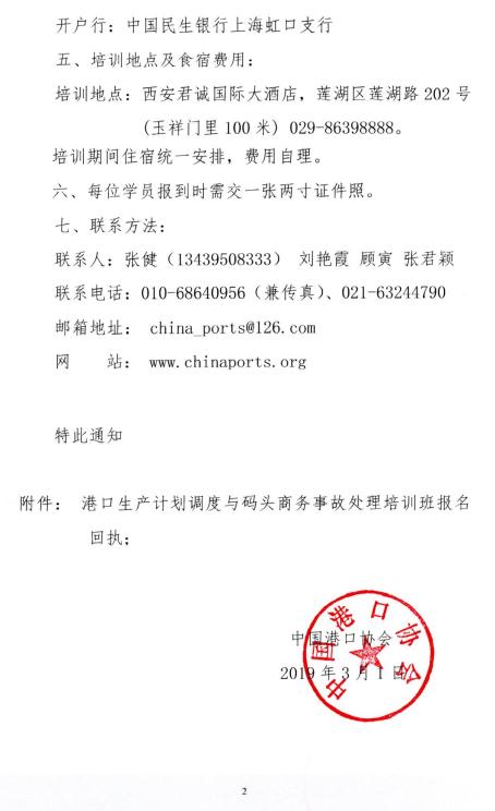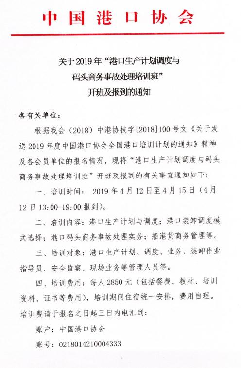 电子版通知下载:关于2019年“港口生产计划调度与码头商务事故处理培训班”开班及报到的通知.pdf