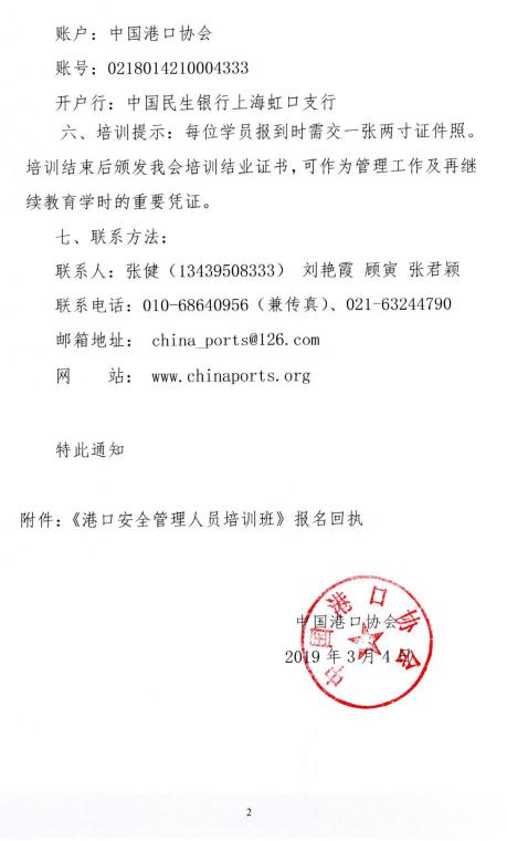 关于2019年“港口安全管理人员培训班”开班及报到的通知.pdf