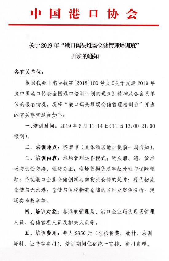 电子版通知下载:关于2019年“港口码头堆场仓储管理培训班”开班的通知.pdf
