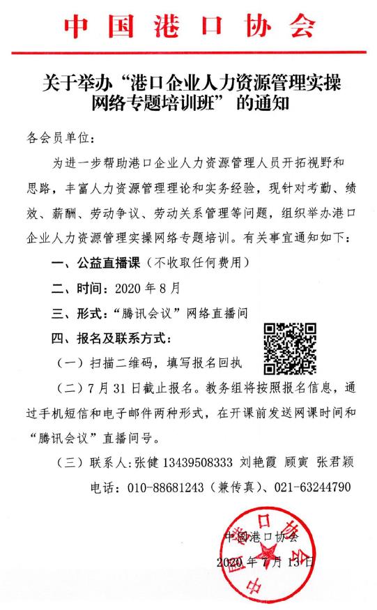 关于举办“港口企业人力资源管理实操网络专题培训班”的通知