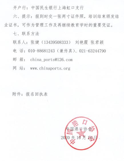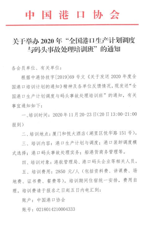 关于举办2020年“全国港口生产计划调度与码头事故处理培训班”的通知