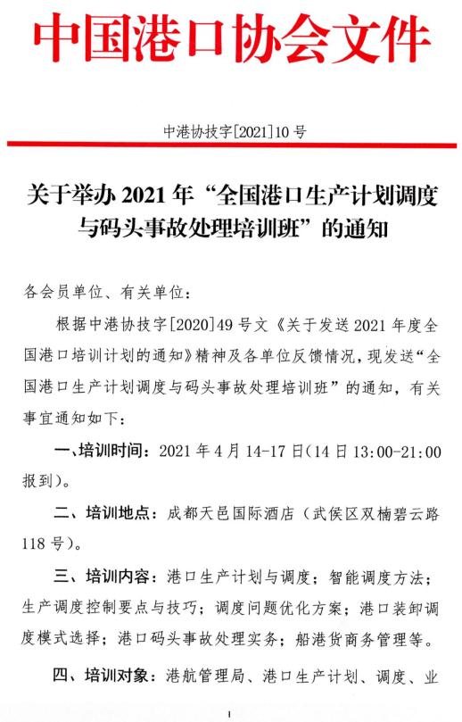 电子版通知:关于举办2021年“全国港口生产计划调度与码头事故处理培训班”的通知.pdf