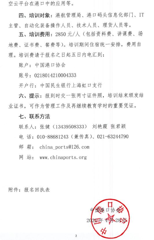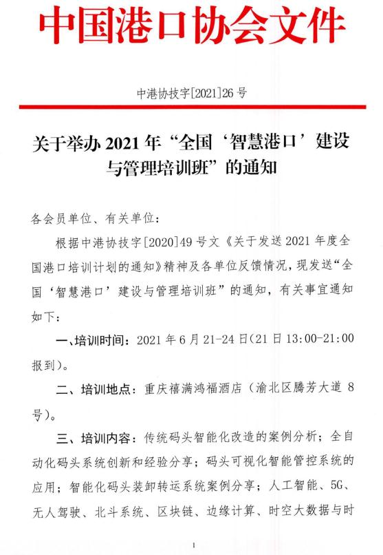 关于举办2021年“全国‘智慧港口’建设与管理培训班”的通知