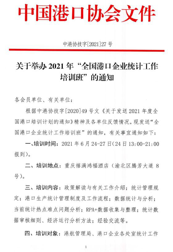 关于举办2021年“全国港口企业统计工作培训班”的通知