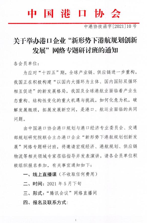 关于举办港口企业“新形势下港航规划创新发展”网络专题研讨班的通知