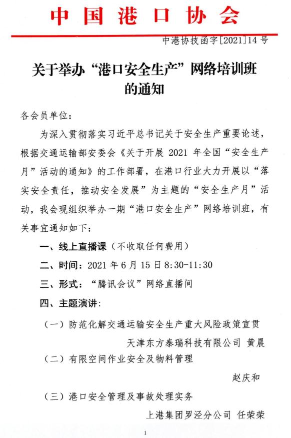 下一篇:关于举办“学习百年党史、汲取奋进力量—2021全国港口行业党史学习教育与党建工作培训班”的通知