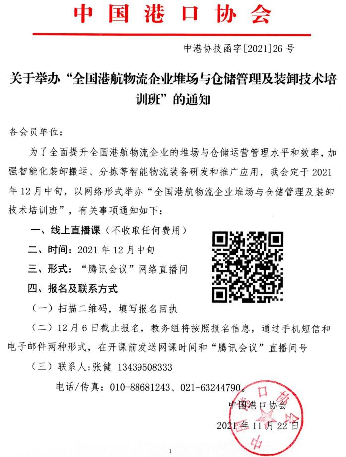 关于举办“全国港航物流企业堆场与仓储管理及装卸技术培训班”的通知