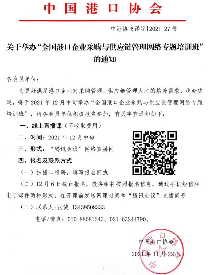 关于举办“全国港口企业采购与供应链管理网络专题培训班”的通知