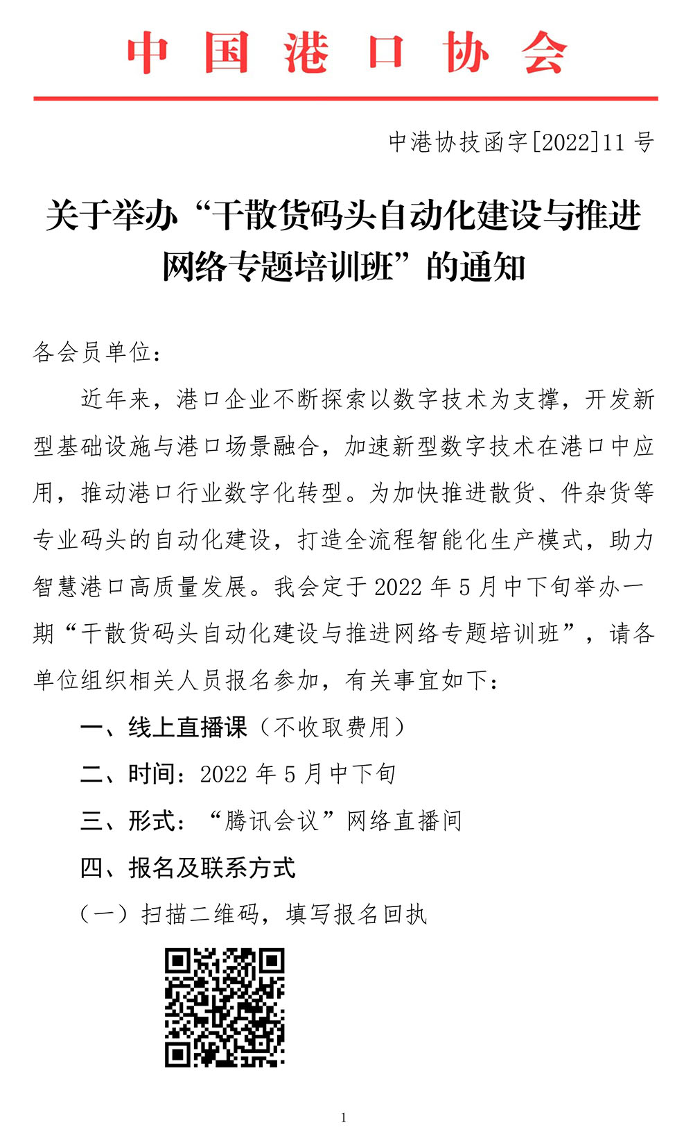 关于举办“干散货码头自动化建设与推进网络专题培训班”的通知