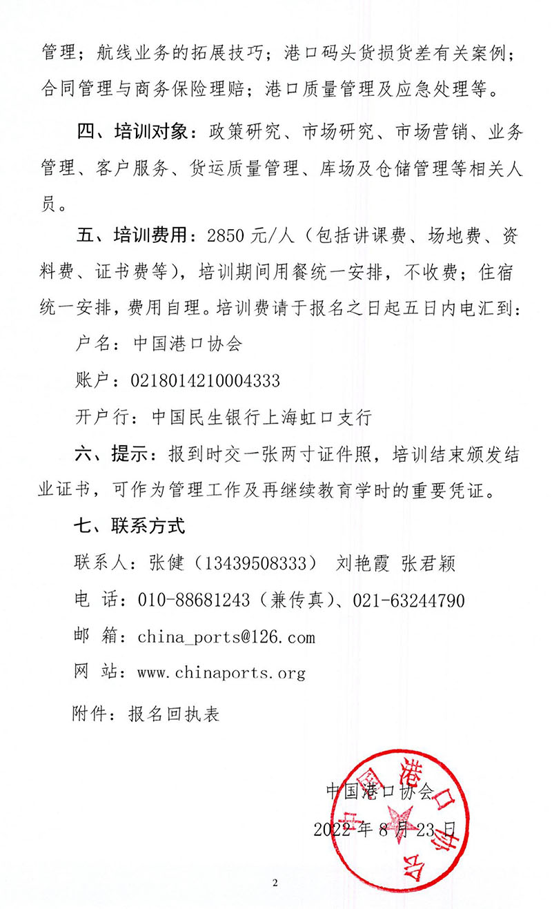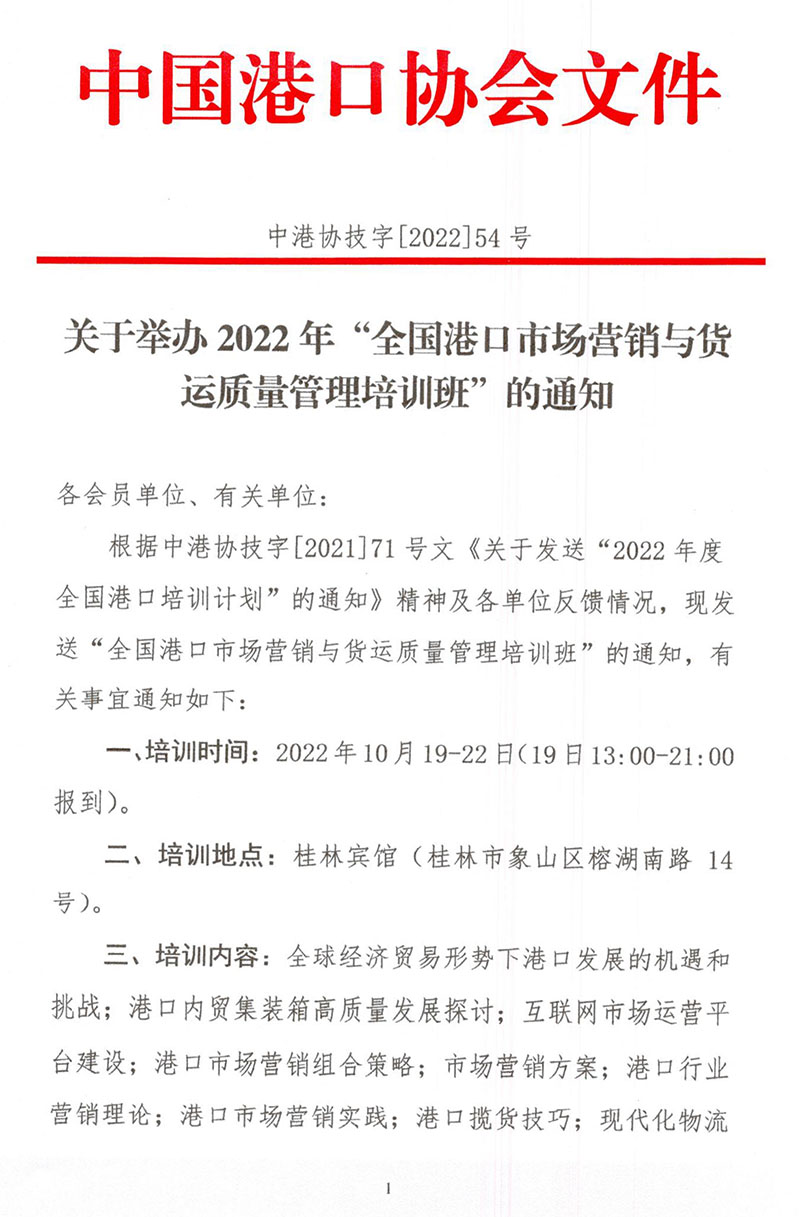 关于举办2022年“全国港口市场营销与货运质量管理培训班”的通知
