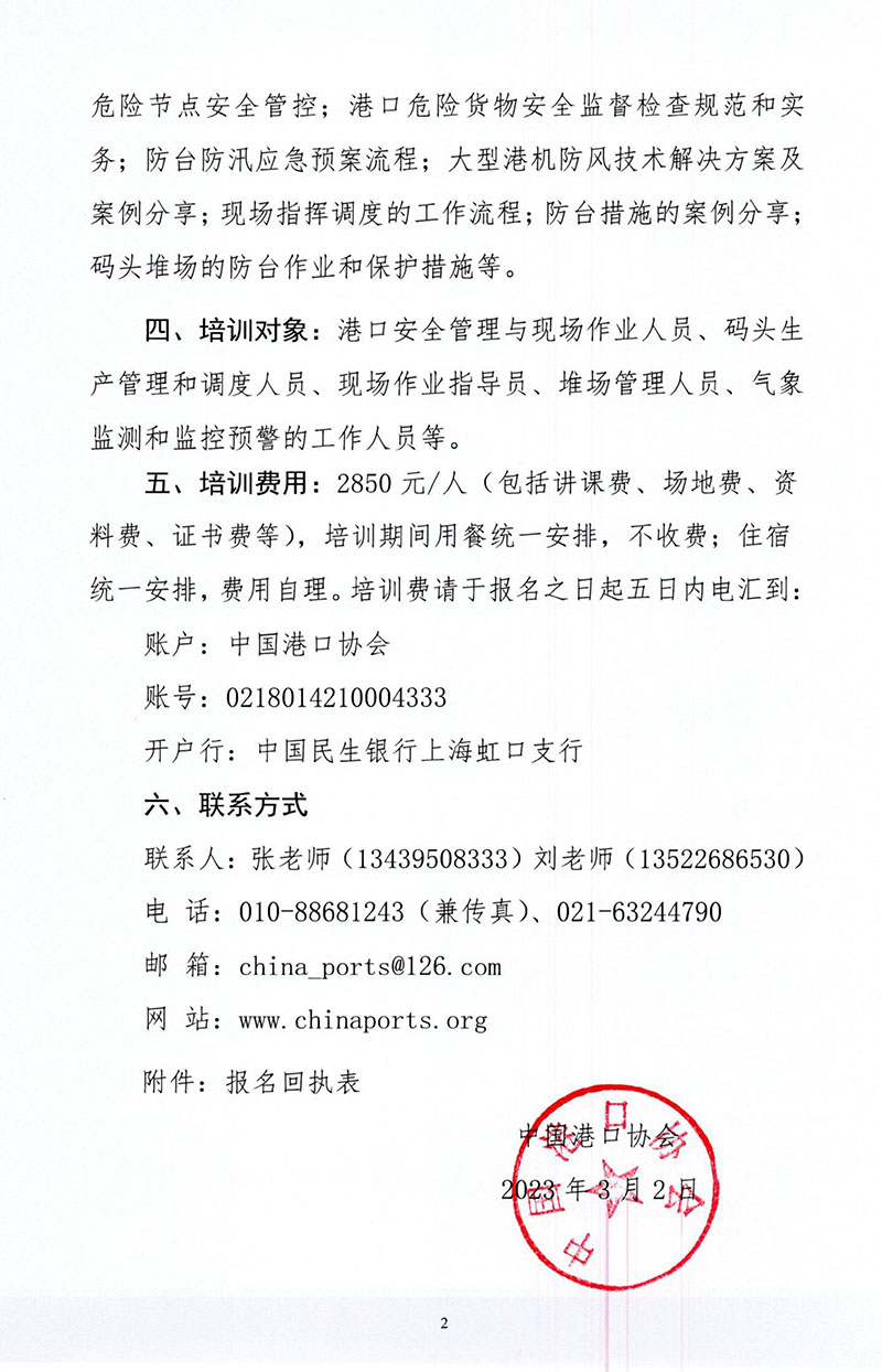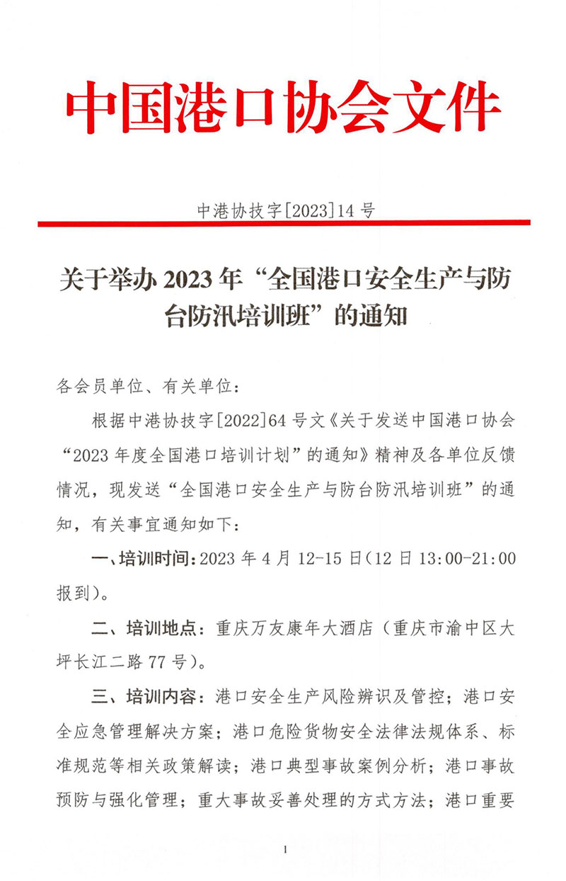 关于举办2023年“全国港口安全生产与防台防汛培训班”的通知