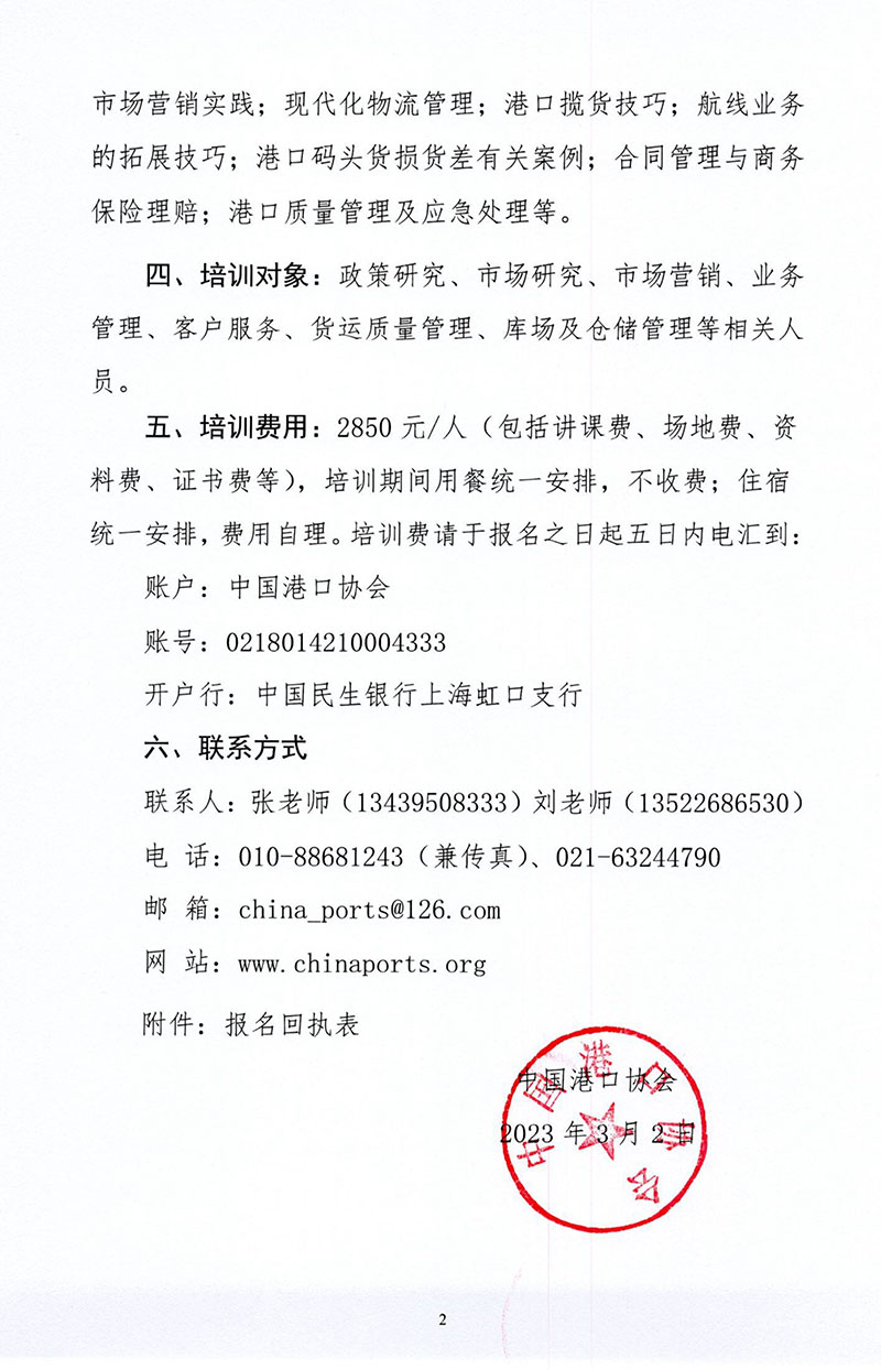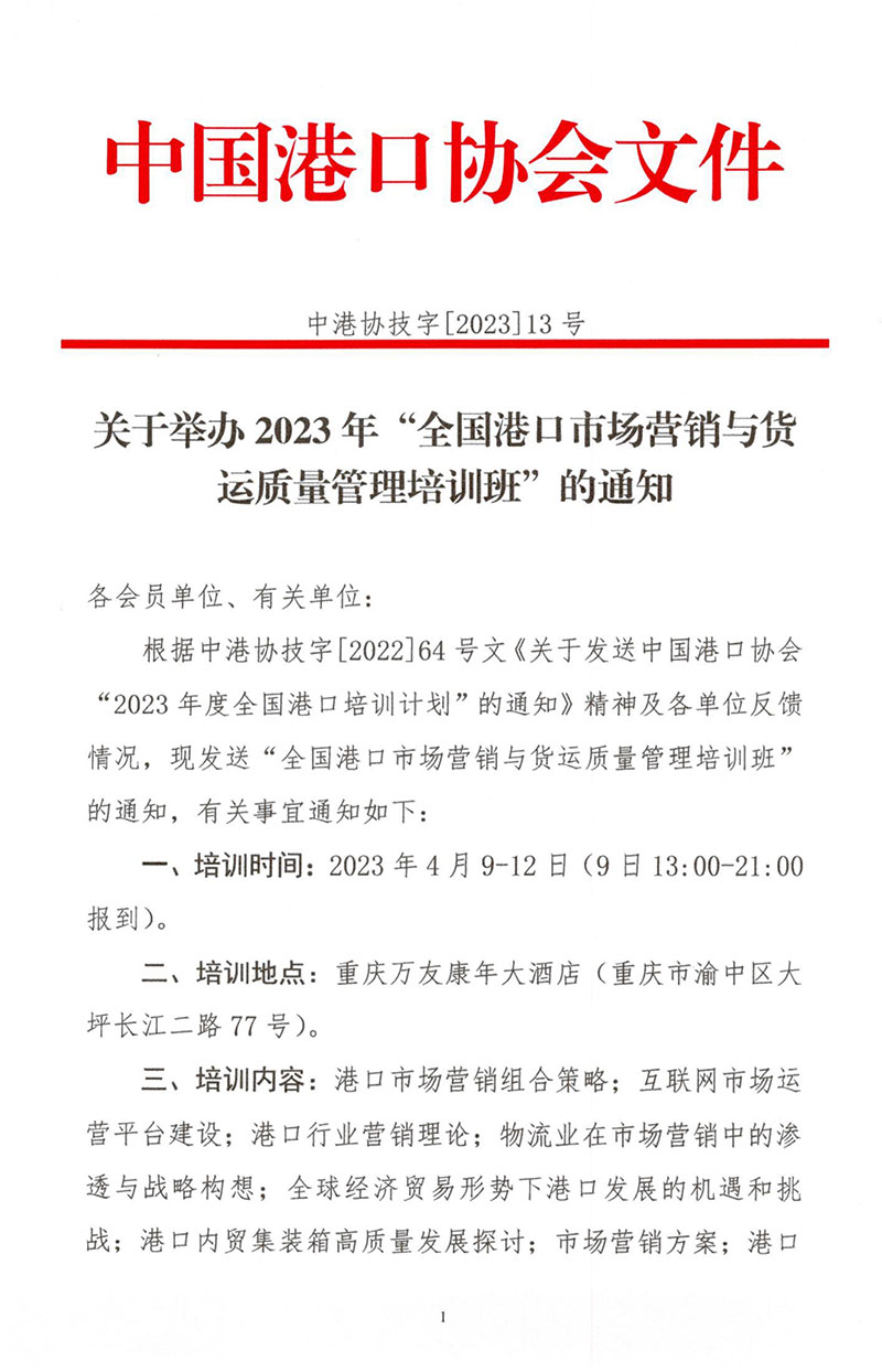 关于举办2023年“全国港口市场营销与货运质量管理培训班”的通知