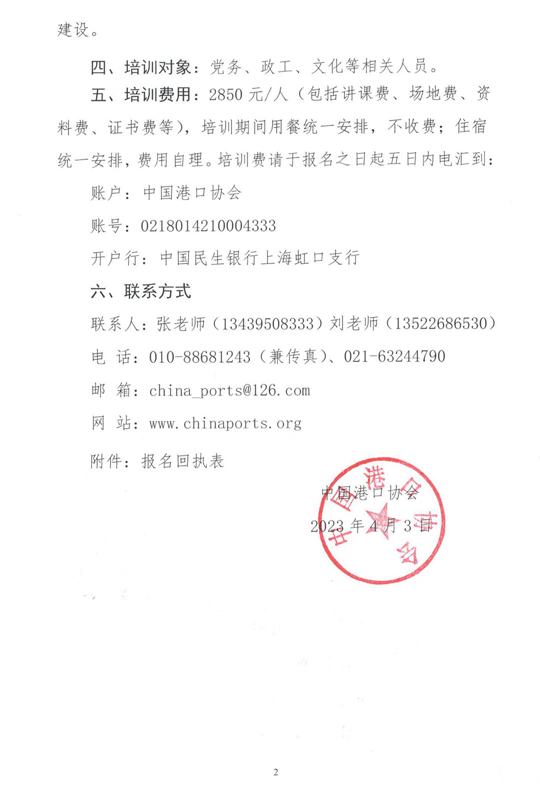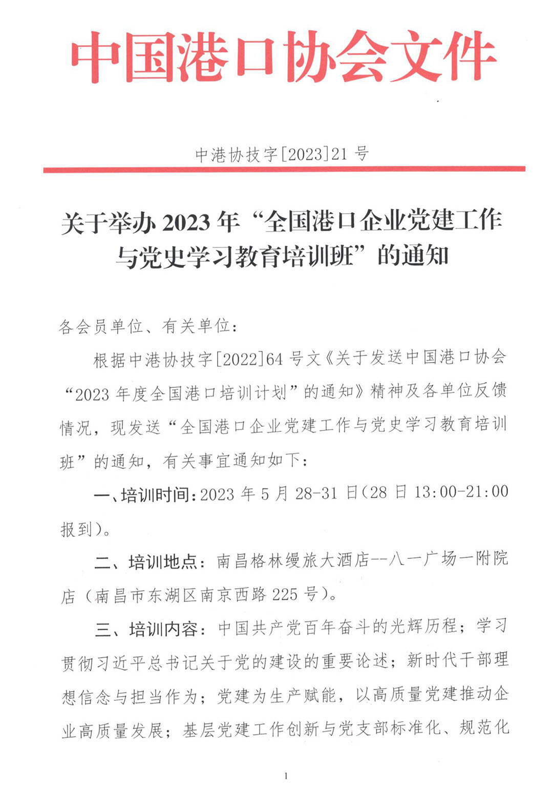关于举办2023年“全国港口企业党建工作与党史学习教育培训班”的通知