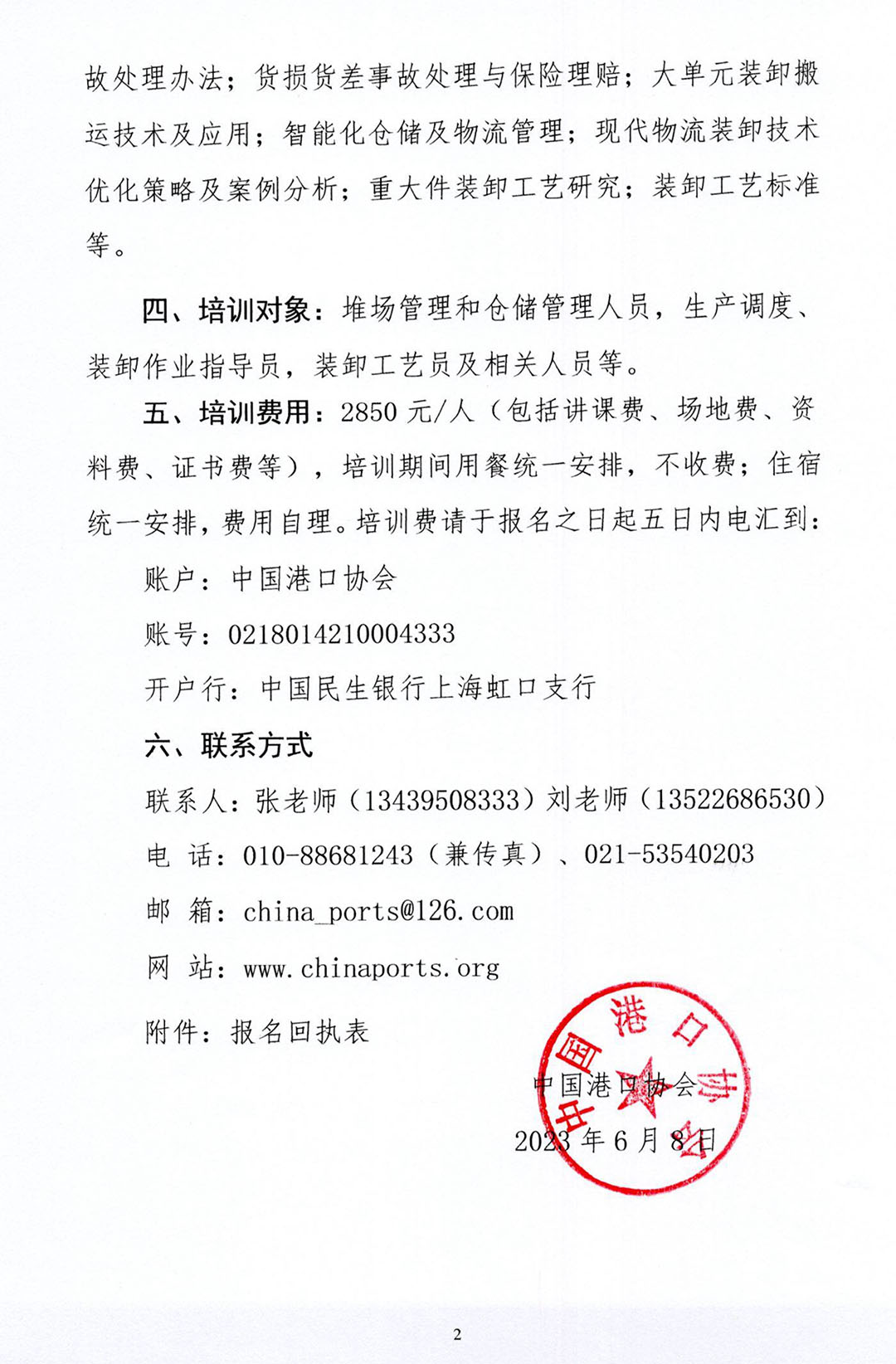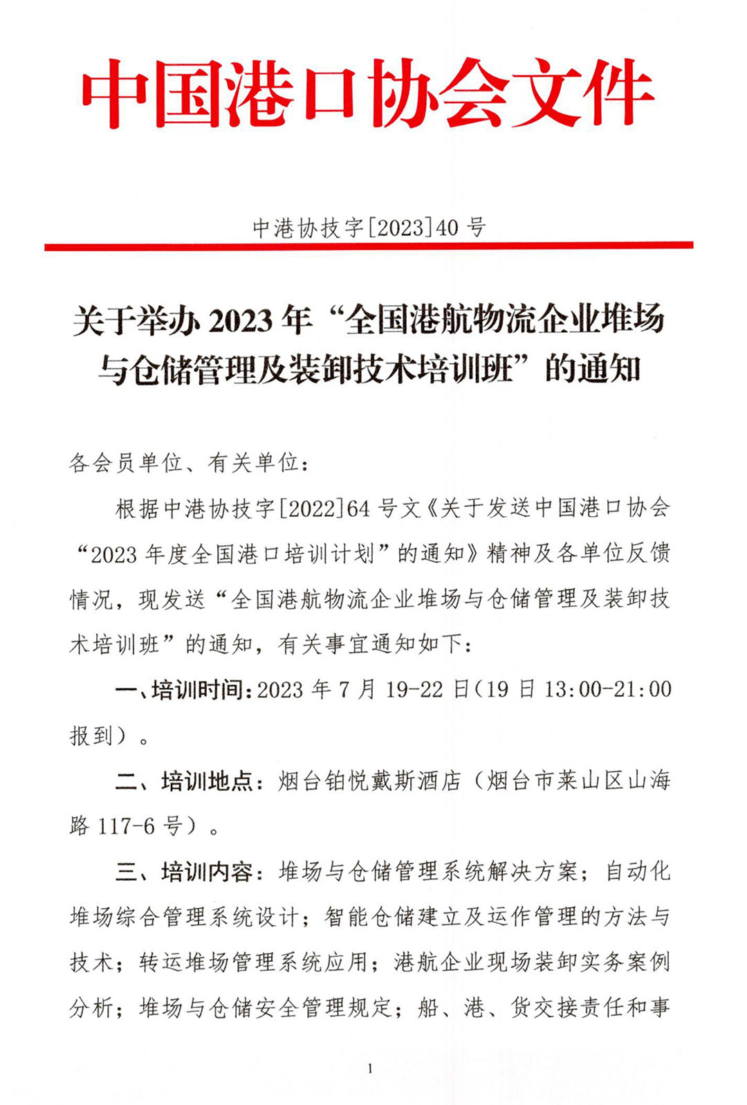 关于举办2023年“全国港航物流企业堆场与仓储管理及装卸技术培训班”的通知