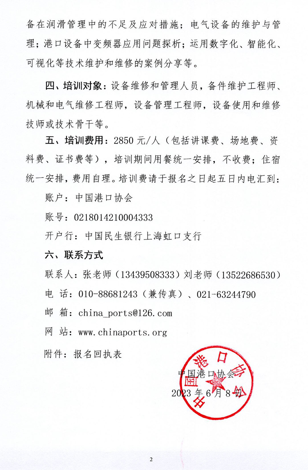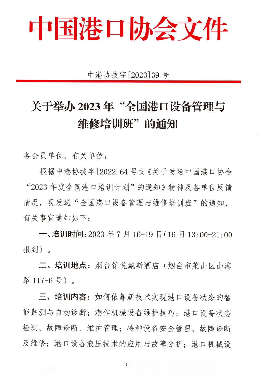 关于举办2023年“全国港口设备管理与维修培训班”的通知
