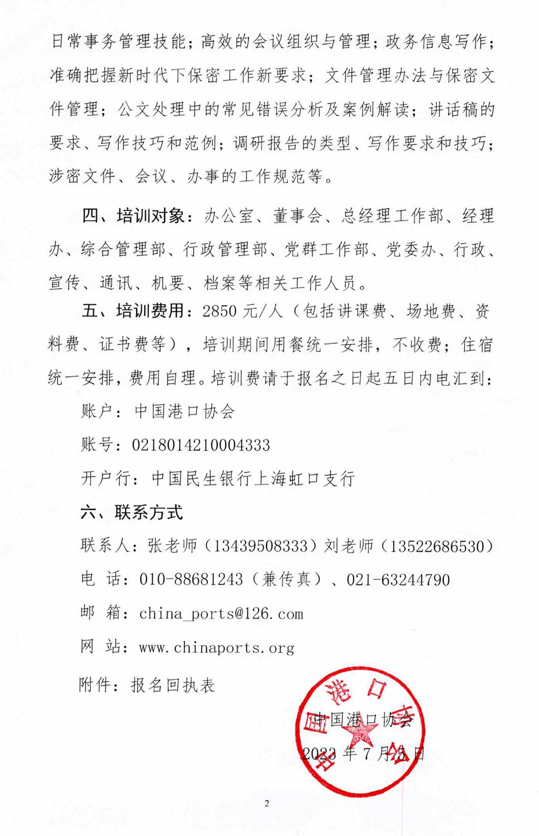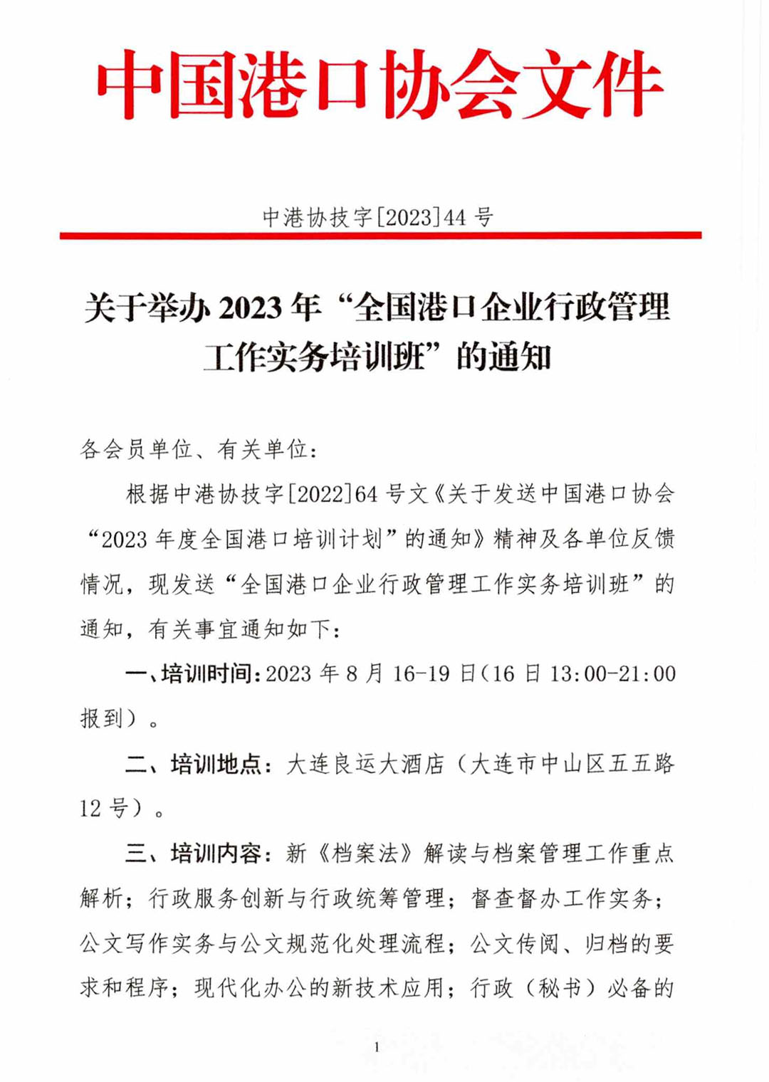 关于举办2023年“全国港口企业行政管理工作实务培训班”的通知