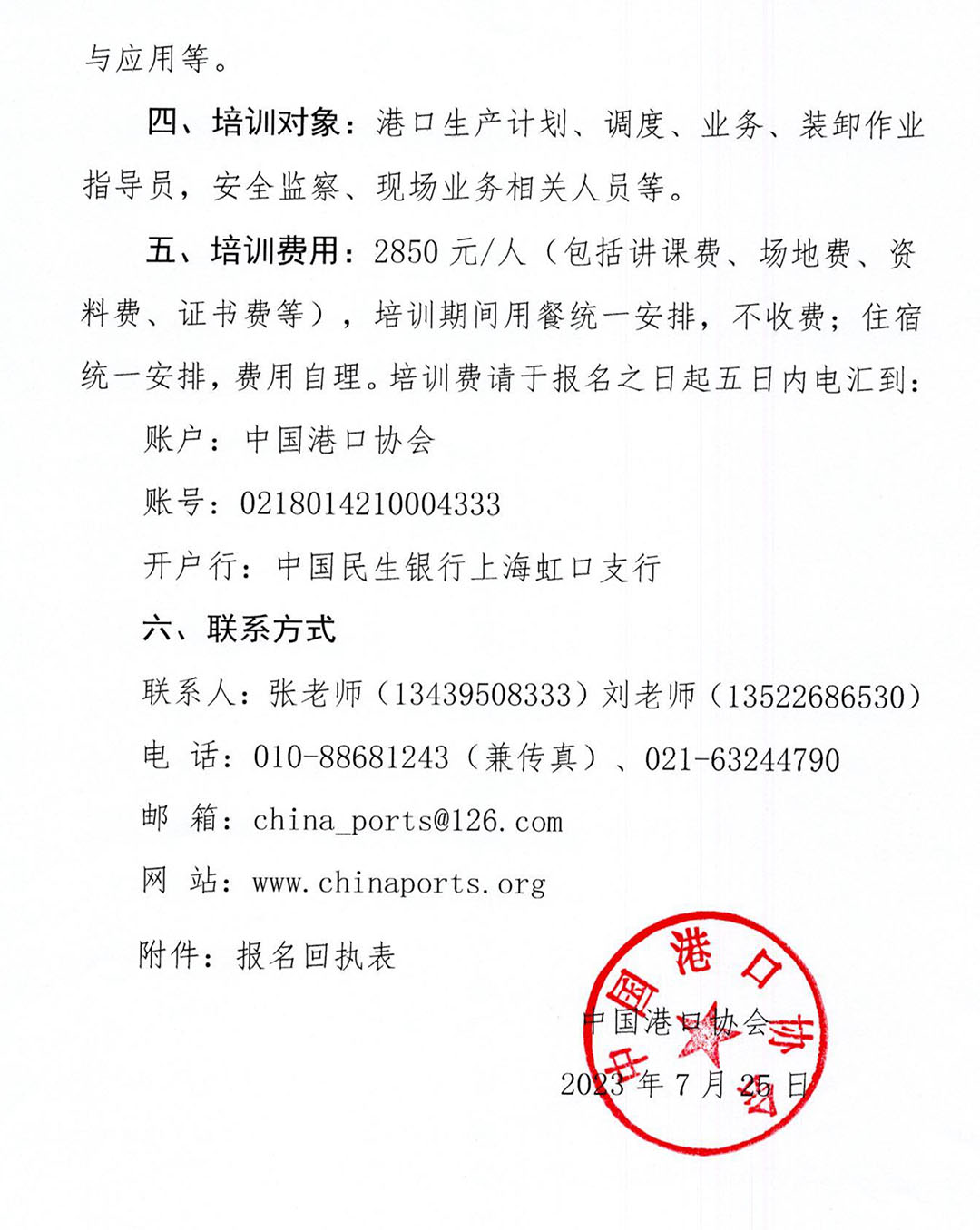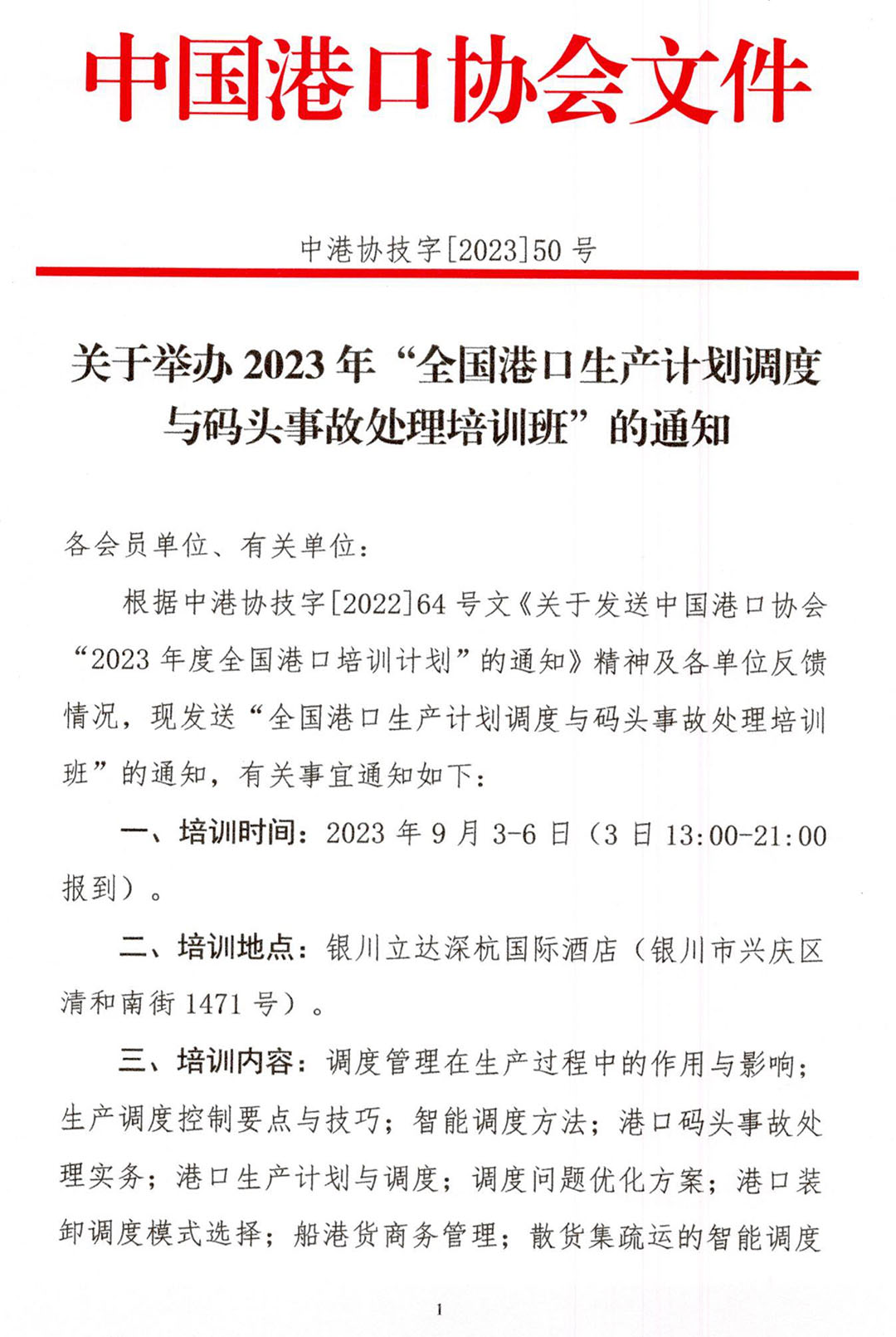 原文下载:关于举办2023年“全国港口生产计划调度与码头事故处理培训班”的通知.pdf
