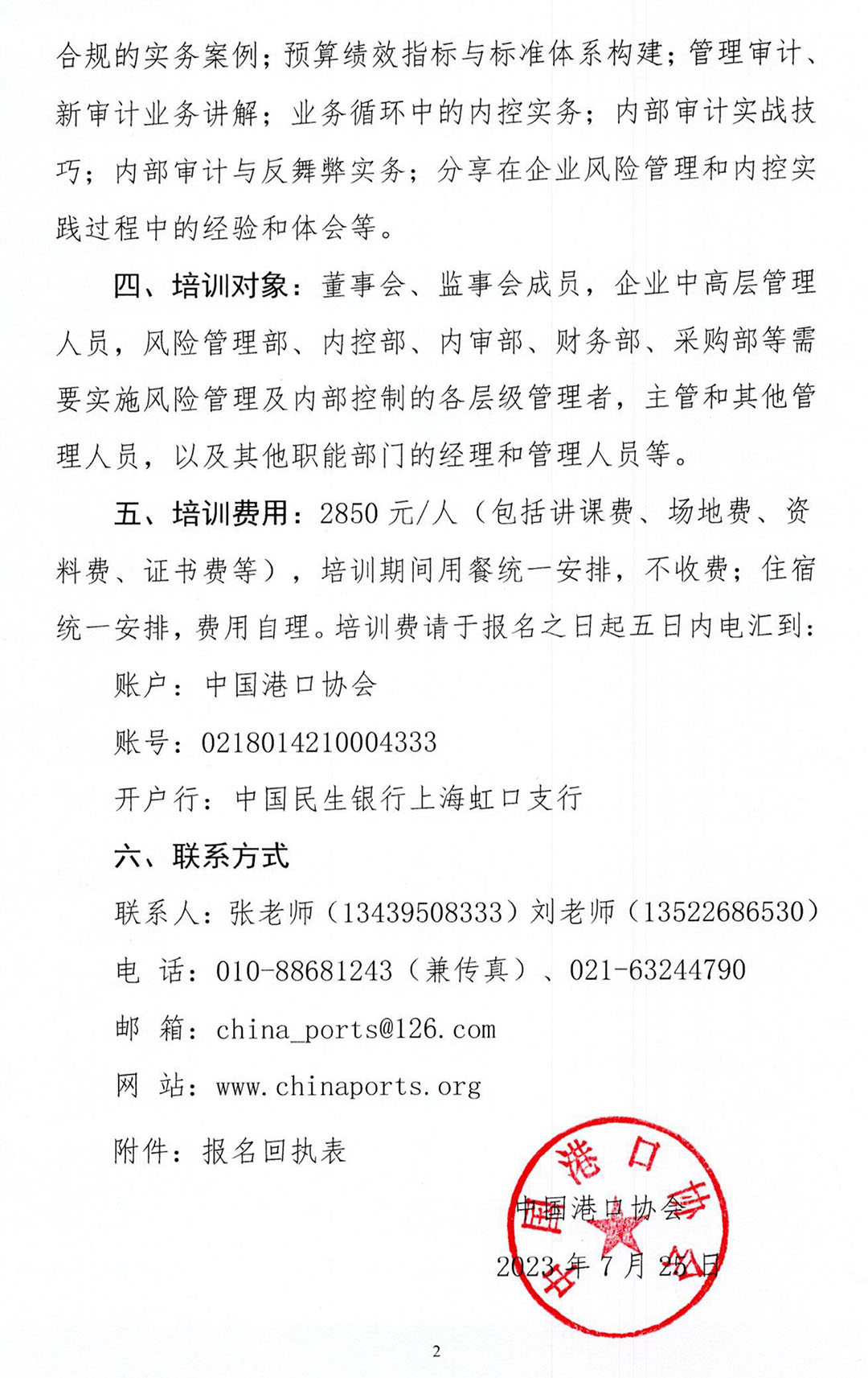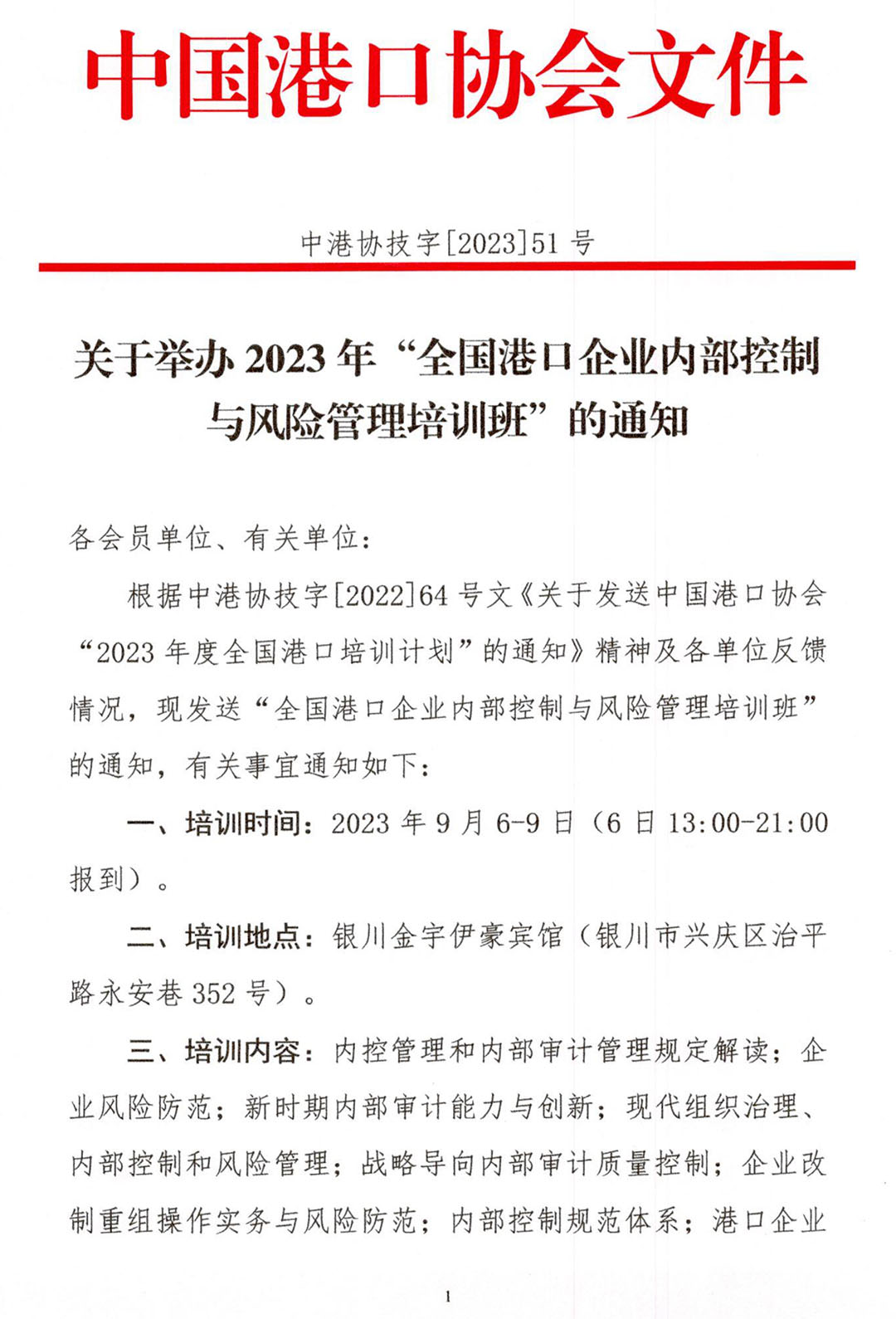 原文下载:关于举办2023年“全国港口企业内部控制与风险管理培训班”的通知.pdf