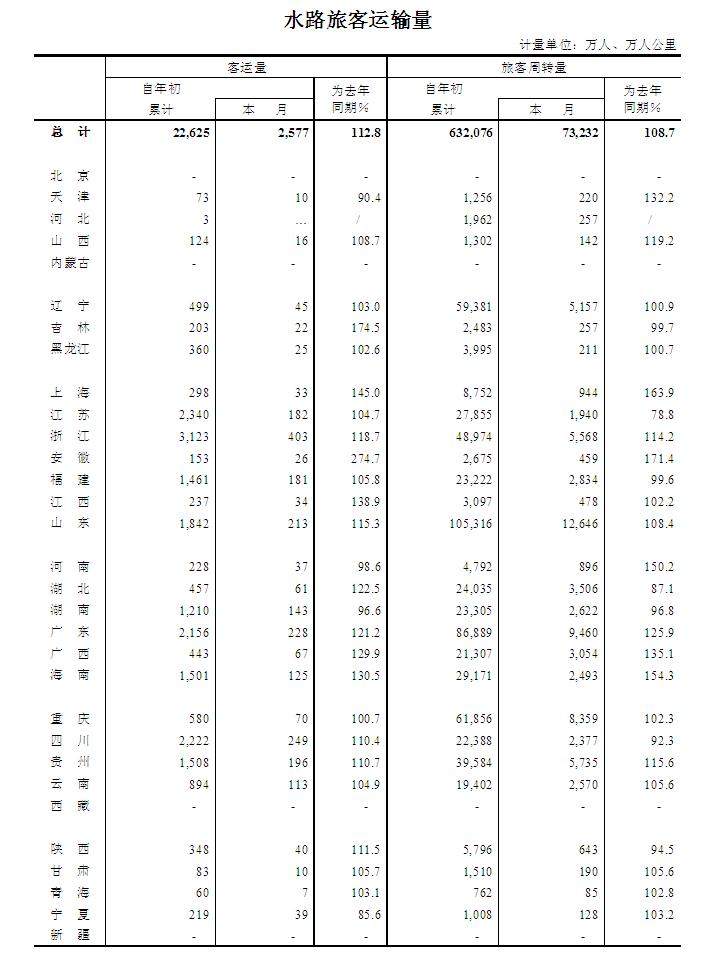 2014年10月水路旅客运输量