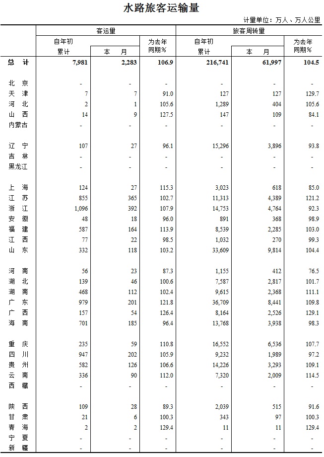 2015年4月水路旅客运输量