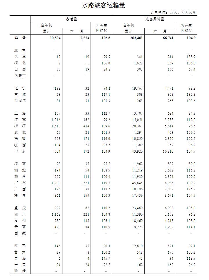 2015年5月水路旅客运输量