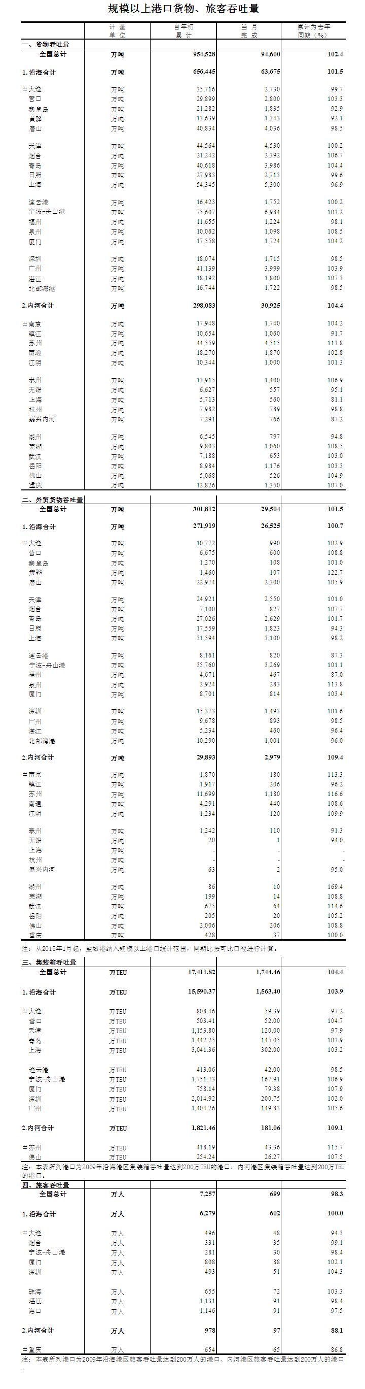 2015年10月规模以上港口货物、旅客吞吐量