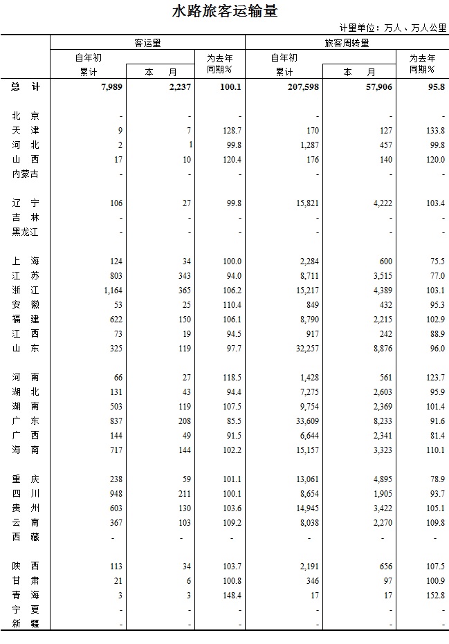 2016年4月水路旅客运输量