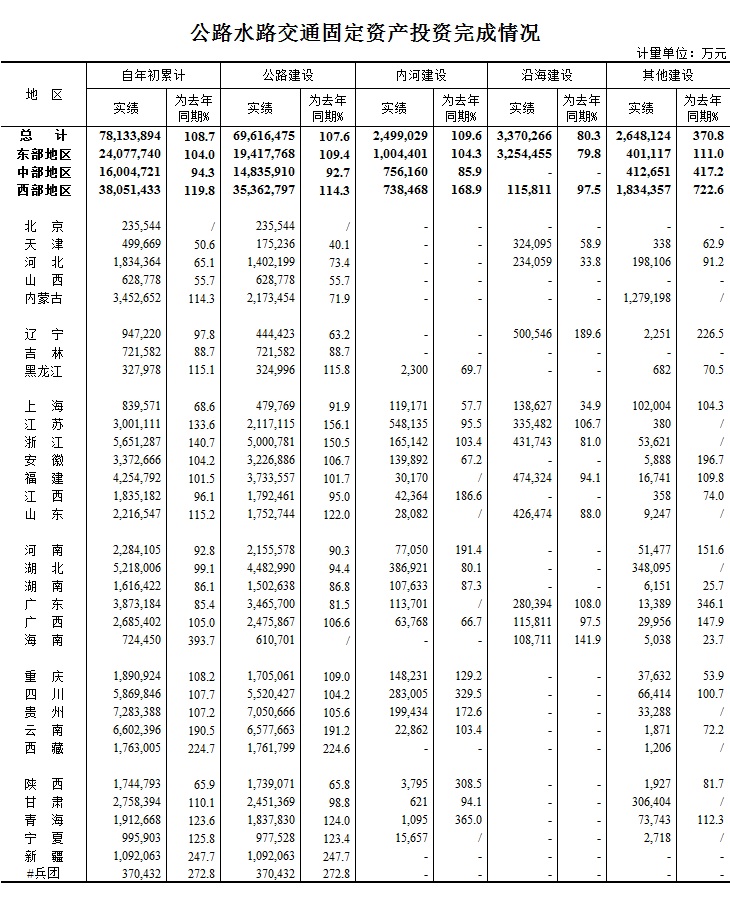 2016年1-6月公路水路交通固定资产投资完成情况