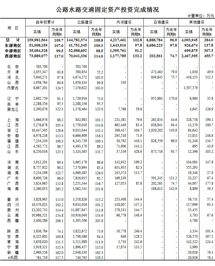 2016年1-10月公路水路交通固定资产投资完成情况