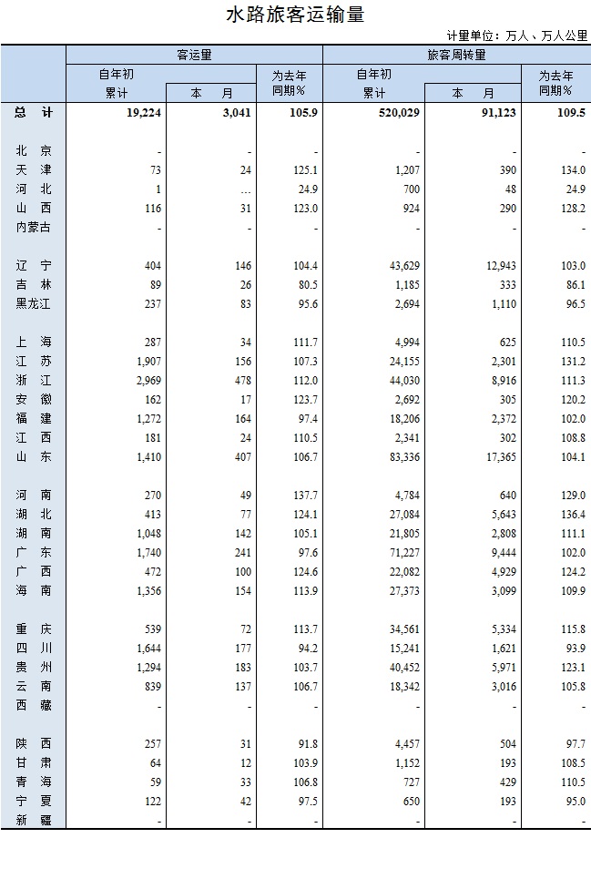 2017年8月水路旅客运输量