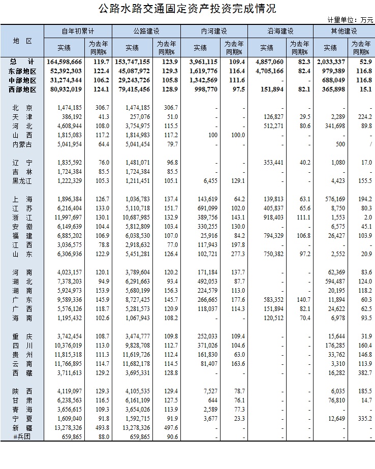 2017年9月公路水路交通固定资产投资完成情况