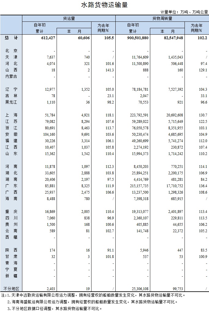 2017年11月水路货物运输量