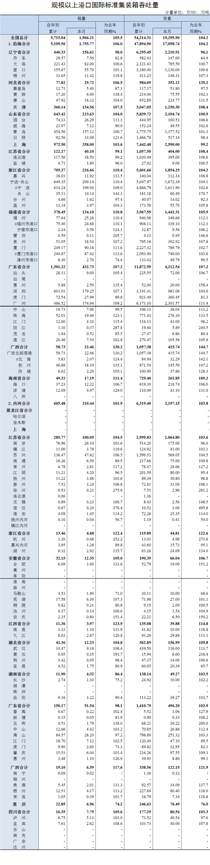 2018年3月规模以上港口国际标准集装箱吞吐量