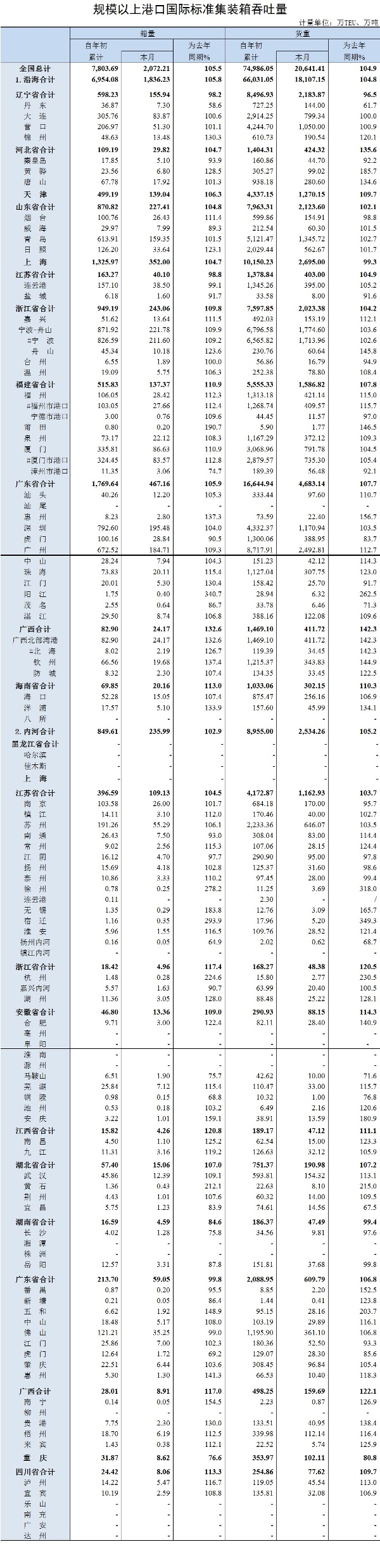 2018年4月规模以上港口国际标准集装箱吞吐量