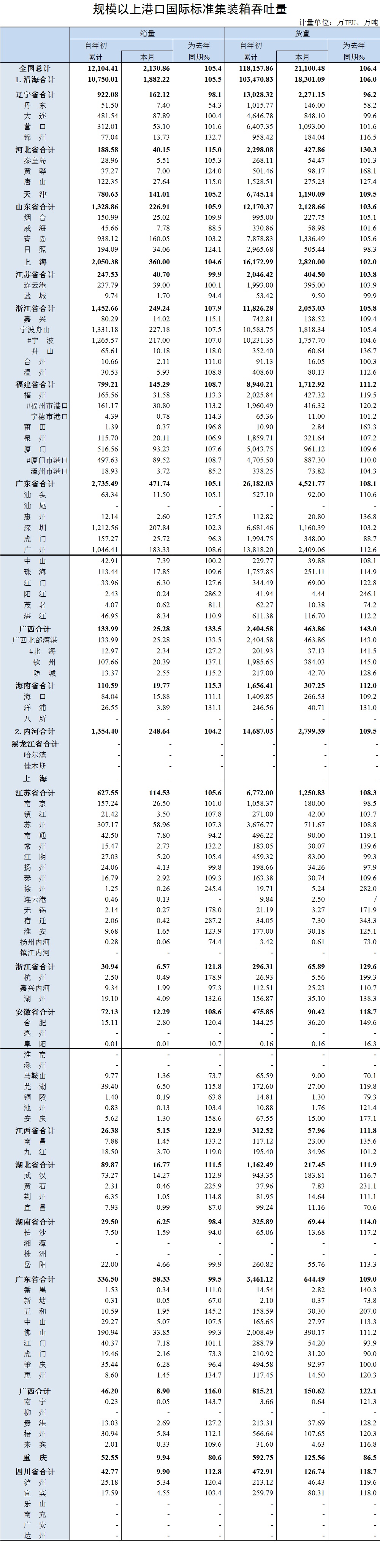 2018年6月规模以上港口国际标准集装箱吞吐量
