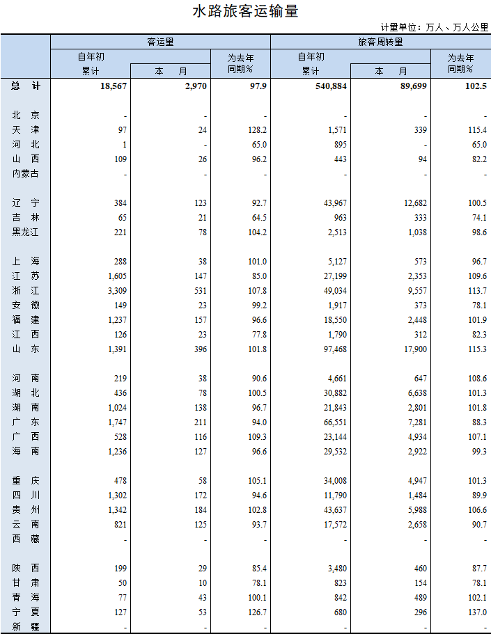 2019年8月水路旅客运输量