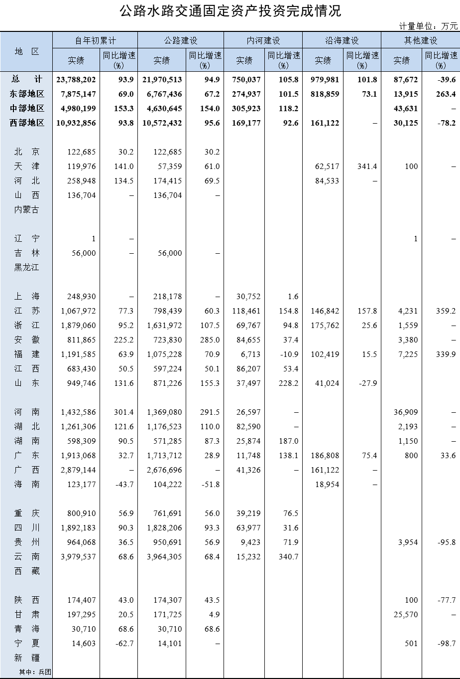 2021年1-2月公路水路交通固定资产投资完成情况