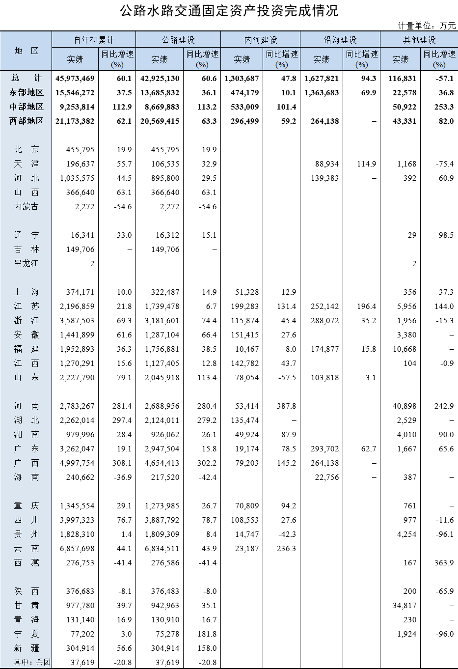 2021年1-3月公路水路交通固定资产投资完成情况