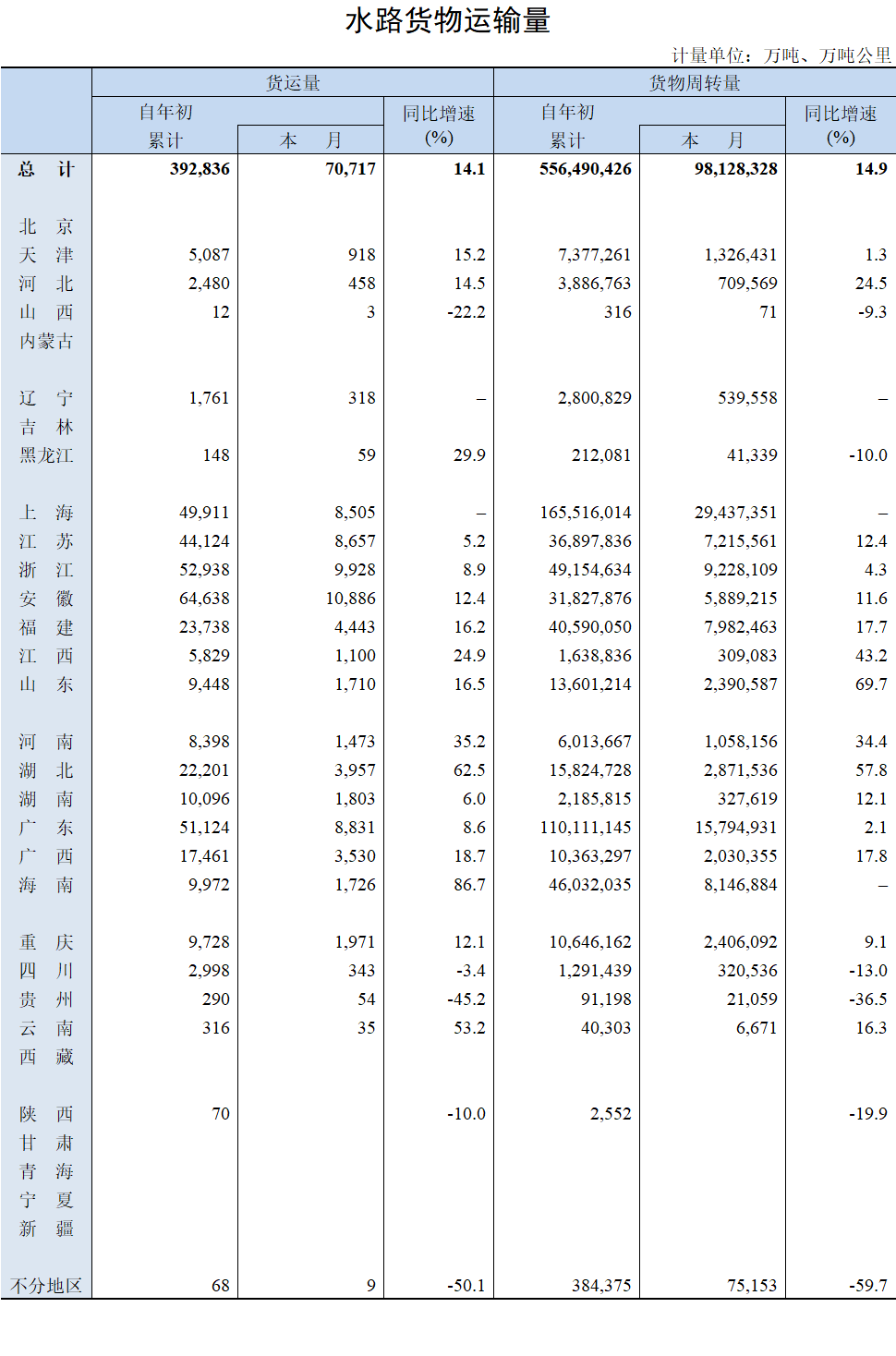 2021年6月水路货物运输量