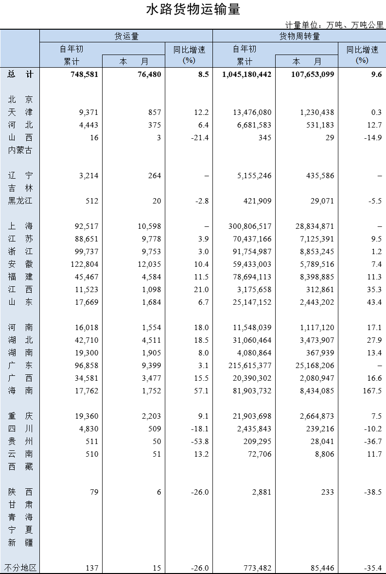2021年11月水路货物运输量