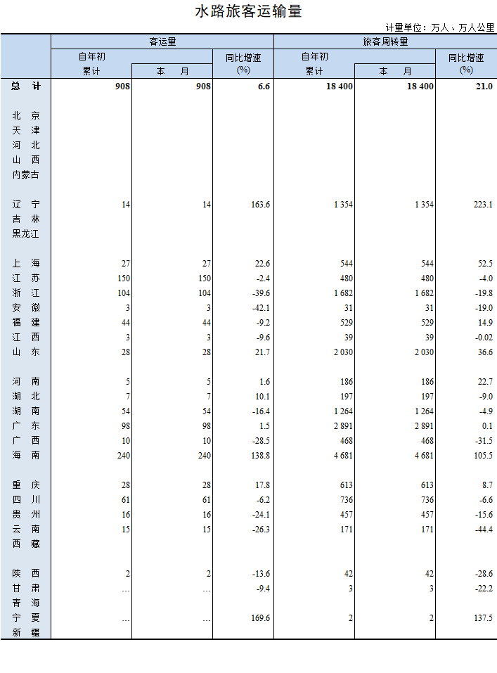 2022年1月水路旅客运输量