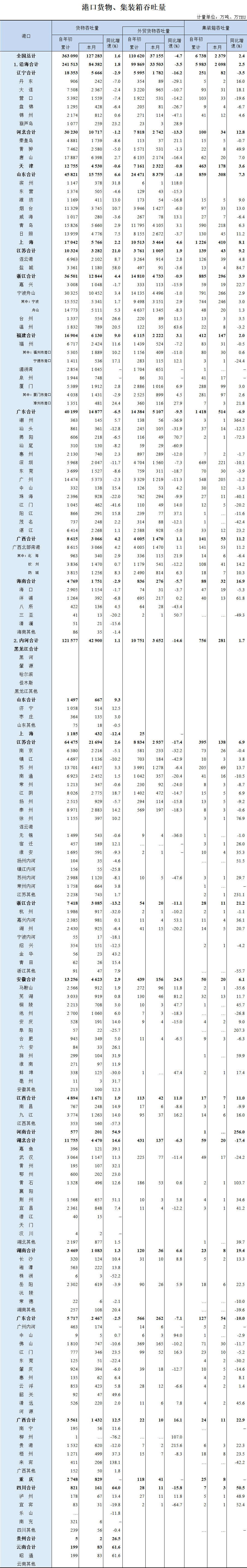 2022年3月全国港口货物、集装箱吞吐量